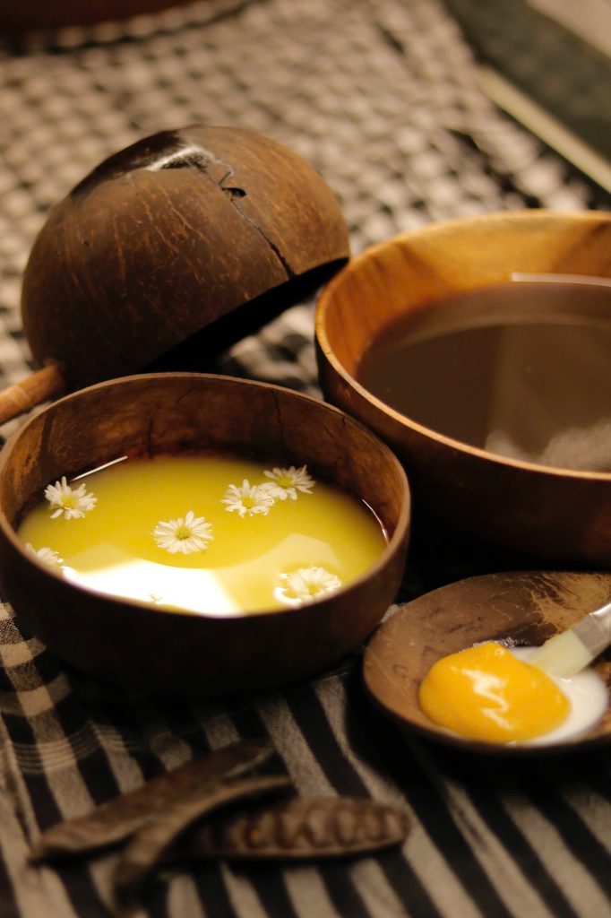 Tại An Miên, bồ kết – biểu tượng chăm sóc tóc truyền thống của người Việt – được kết hợp cùng các loại thảo mộc thuần tự nhiên như hương nhu, tía tô, vỏ bưởi, sả, quế… tạo nên bài gội đầu dưỡng sinh vừa sạch da đầu, mềm tóc, vừa đả thông kinh lạc – thư giãn sâu cho cả thể chất lẫn tinh thần.