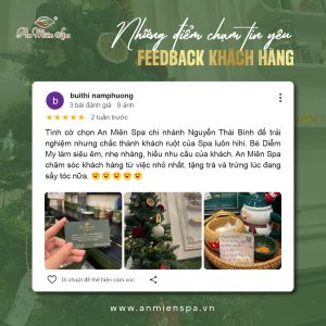 Những khách hàng đến với An Miên Spa luôn biết cách chăm sóc sức khoẻ của chính mình bằng những dịch vụ như Detox da đầu, gội đầu dưỡng sinh bằng thảo dược, Massage cổ vai gáy thắt lưng… Và đặc biệt, họ còn biết chăm sóc sức khoẻ tinh thần bằng cách trở về tuổi thơ cùng với An Miên.