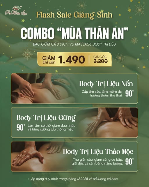 Trong không khí rộn ràng của mùa lễ hội, An Miên mong muốn mang đến một không gian yên bình để quý khách hàng thực sự được nghỉ ngơi. Chương trình Flash Sale Giáng sinh tập trung vào dòng dịch vụ trị liệu chuyên sâu: