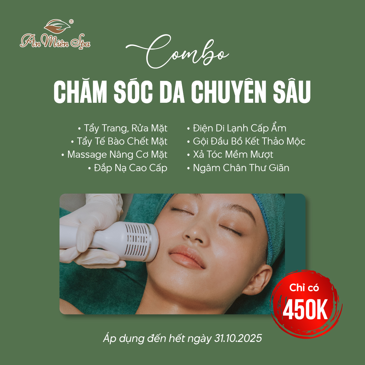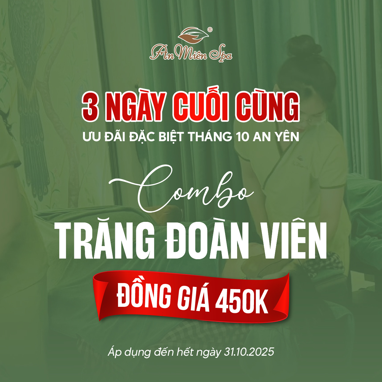 Đây là cơ hội DUY NHẤT trong tháng 10 để bạn trải nghiệm các liệu trình chuyên sâu của An Miên với mức giá hấp dẫn chưa từng có: ĐỒNG GIÁ 450K.