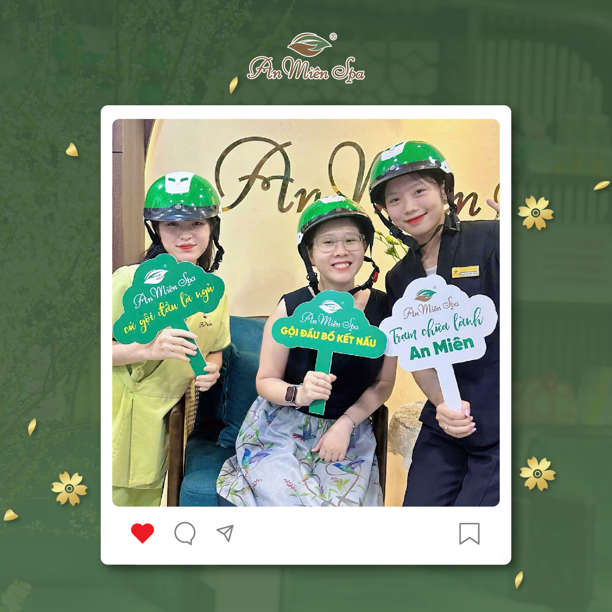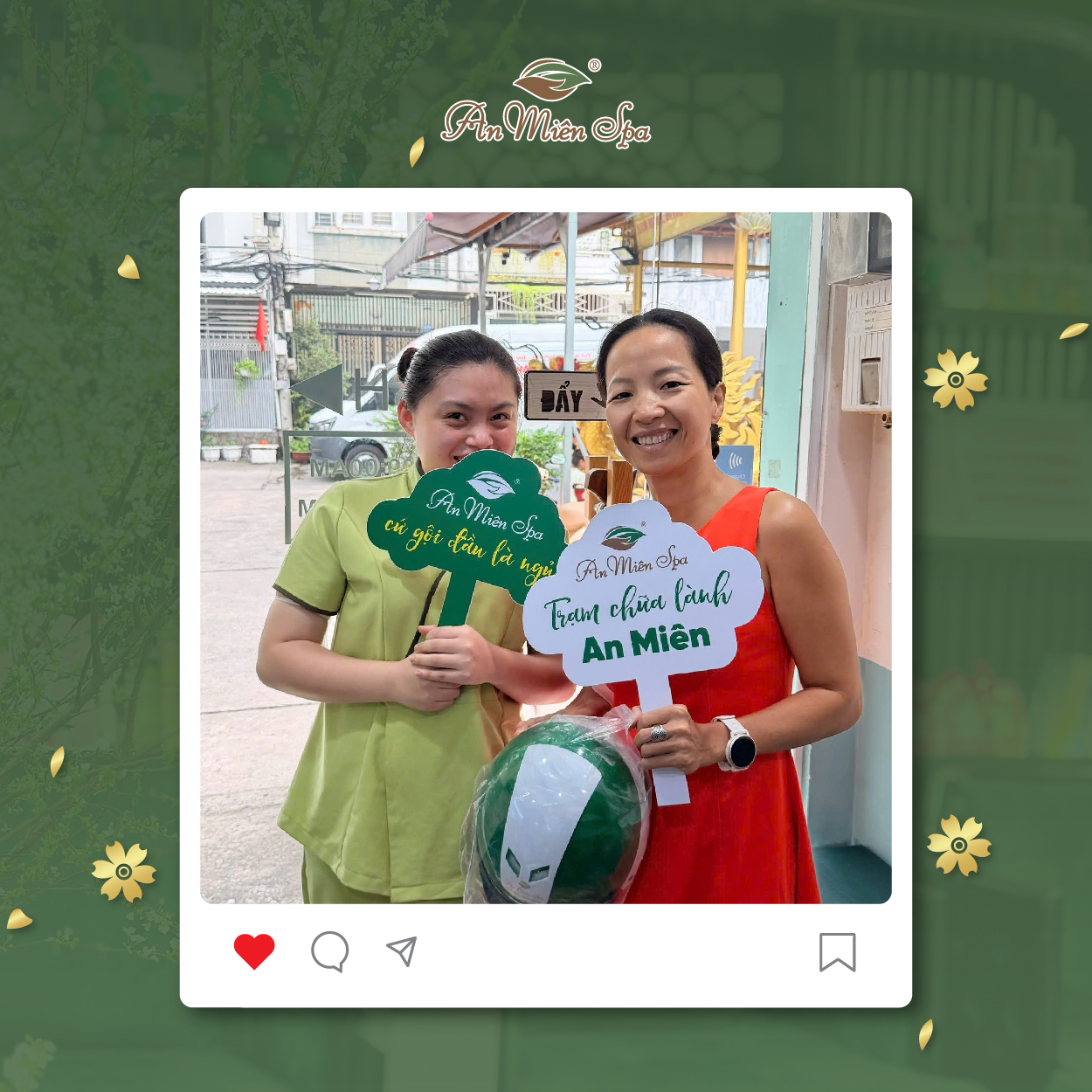 Bạn yêu thích không gian xanh mát, đậm chất mộc của An Miên? Đừng ngần ngại lưu lại những khoảnh khắc thư giãn và chia sẻ lên mạng xã hội. Chỉ với một tấm hình check-in, bạn sẽ nhận ngay Voucher 50.000đ cho lần trải nghiệm dịch vụ tiếp theo.