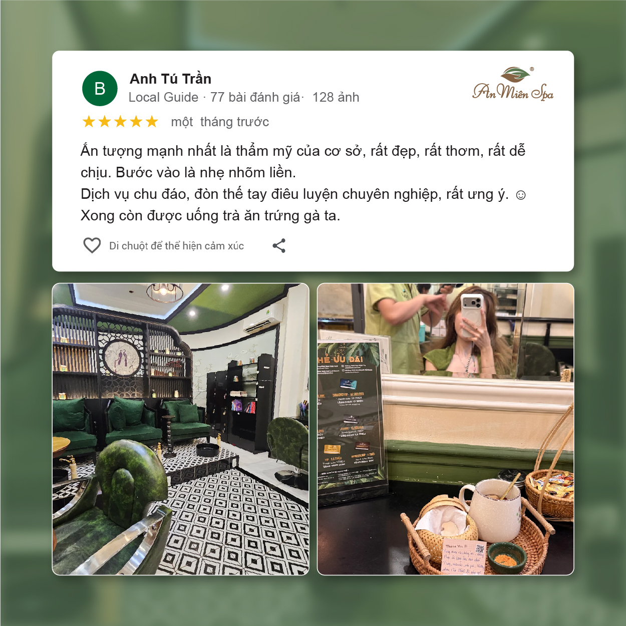 Mỗi dòng đánh giá, mỗi tin nhắn phản hồi hay đơn giản là một cái gật đầu hài lòng của Quý khách sau liệu trình đều được chúng tôi nâng niu như những báu vật. Tại sao An Miên lại coi trọng những điều đó đến vậy? Bởi đó chính là những điểm chạm từ trái tim giúp chúng tôi thấu hiểu giá trị của con đường mình đang đi.