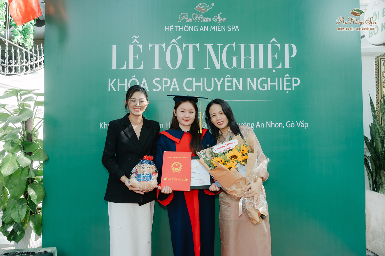 Nghề Spa là nghề mang lại niềm vui cho người khác và sự ổn định cho chính mình. Khoảnh khắc nhìn những học viên nhận bằng tốt nghiệp tại An MiênGò Vấp chính là minh chứng hùng hồn nhất cho sự thành công của lộ trình đào tạo ngành Spa bài bản.