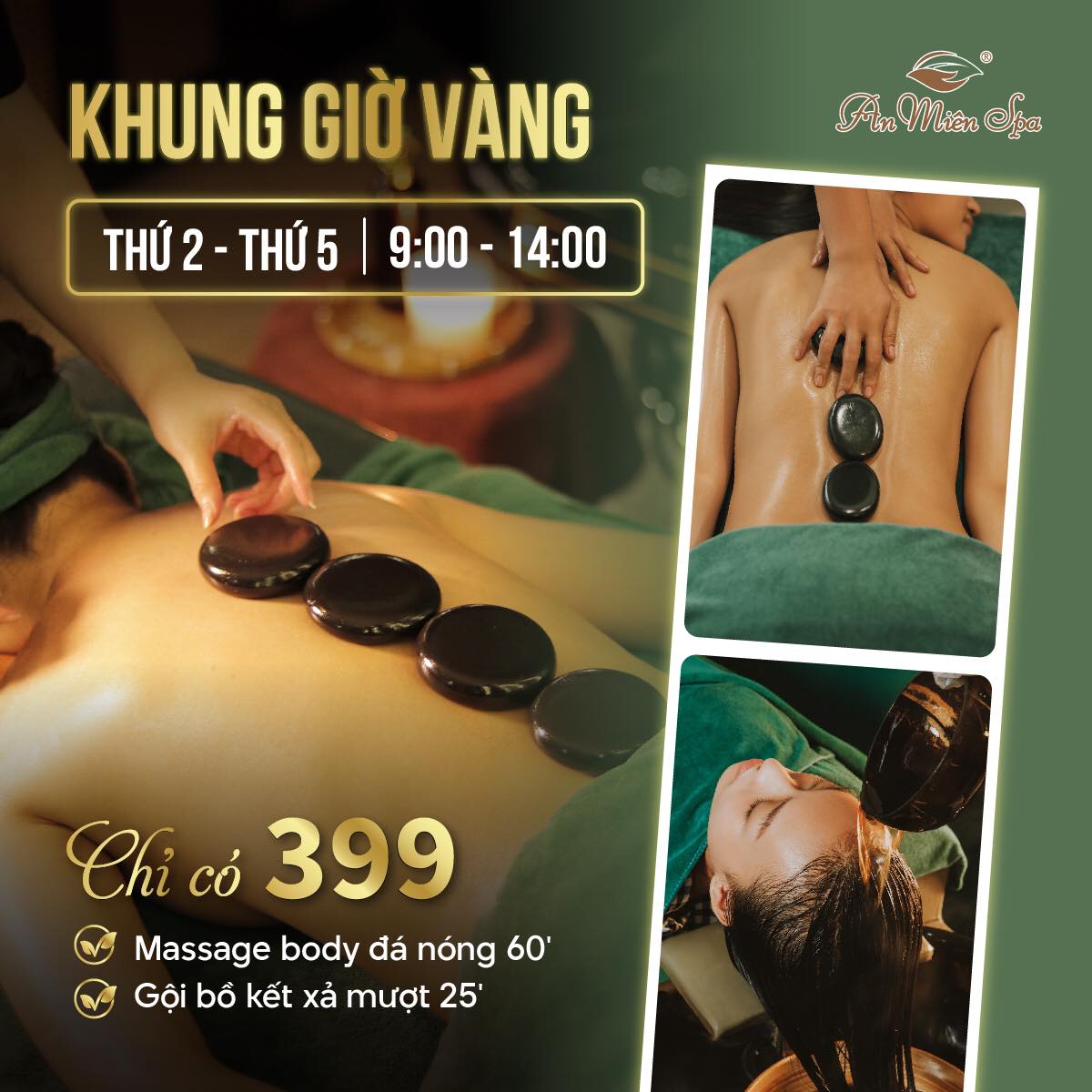 Khuyến mãi Spa TPHCM-An Miên khung giờ vàng từ thứ 2-thứ 5 từ 9h sáng tới 14h chiều