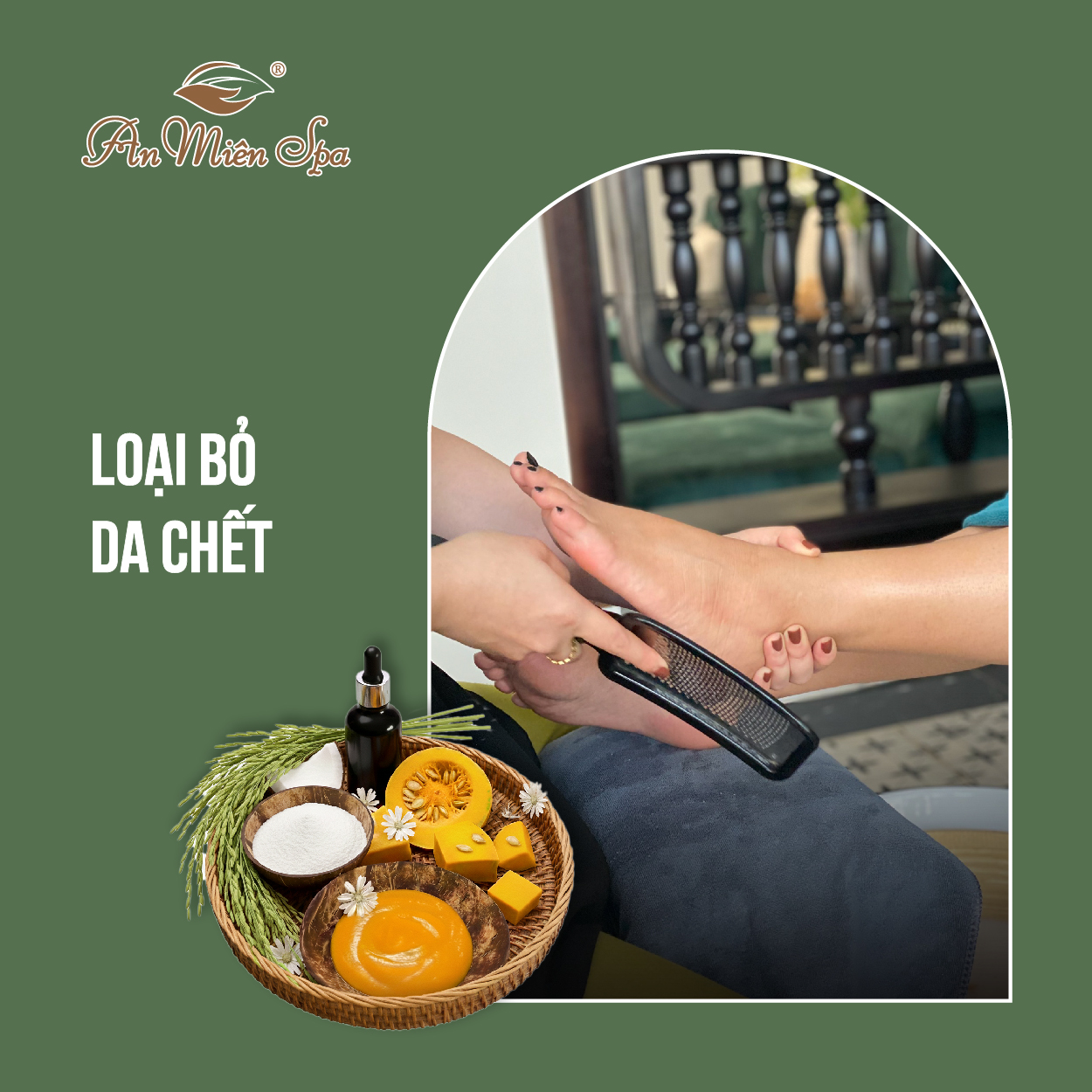 Chính vì triết lý ấy, dịch vụ tẩy chà gót chân tại An Miên không sử dụng hóa chất lột tẩy mạnh gây bào mòn da. Chúng mình chọn con đường “chậm mà sâu”, sử dụng 100% nguyên liệu từ thiên nhiên để nuôi dưỡng và phục hồi. Mọi nguyên liệu, mọi cái chạm tay đều là lời thì thầm vỗ về, yêu thương mà An Miên muốn gửi gắm đến bạn.