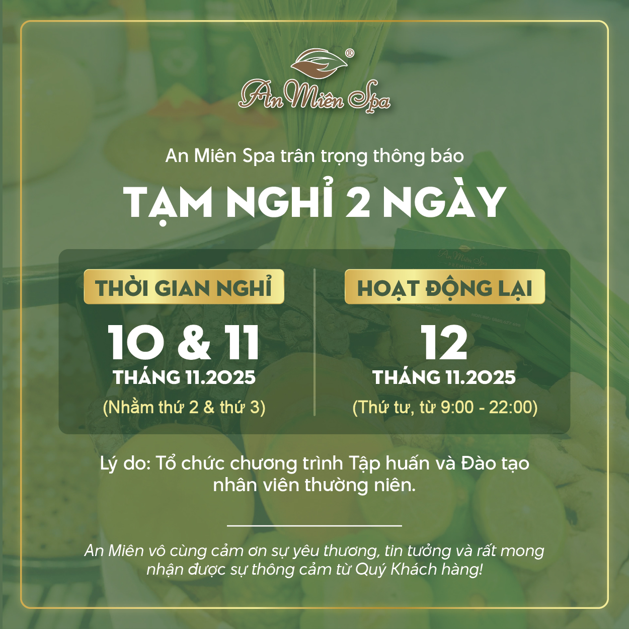 Để Quý Khách hàng thuận tiện sắp xếp thời gian trải nghiệm dịch vụ, An Miên xin thông báo cụ thể: